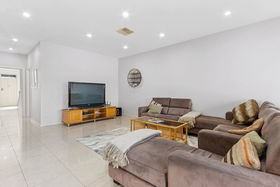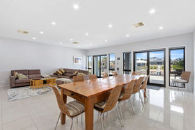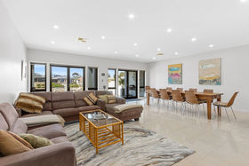 The spacious open plan living provides plenty of room for the whole family to overlook the water